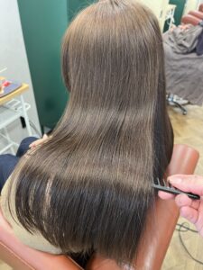 暗めでも重く見えない“透けグレー”で、光に当たった時のツヤがとても綺麗。