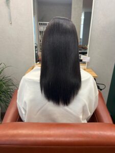 自然なストレート感とツヤを出すことを意識して施術しました。